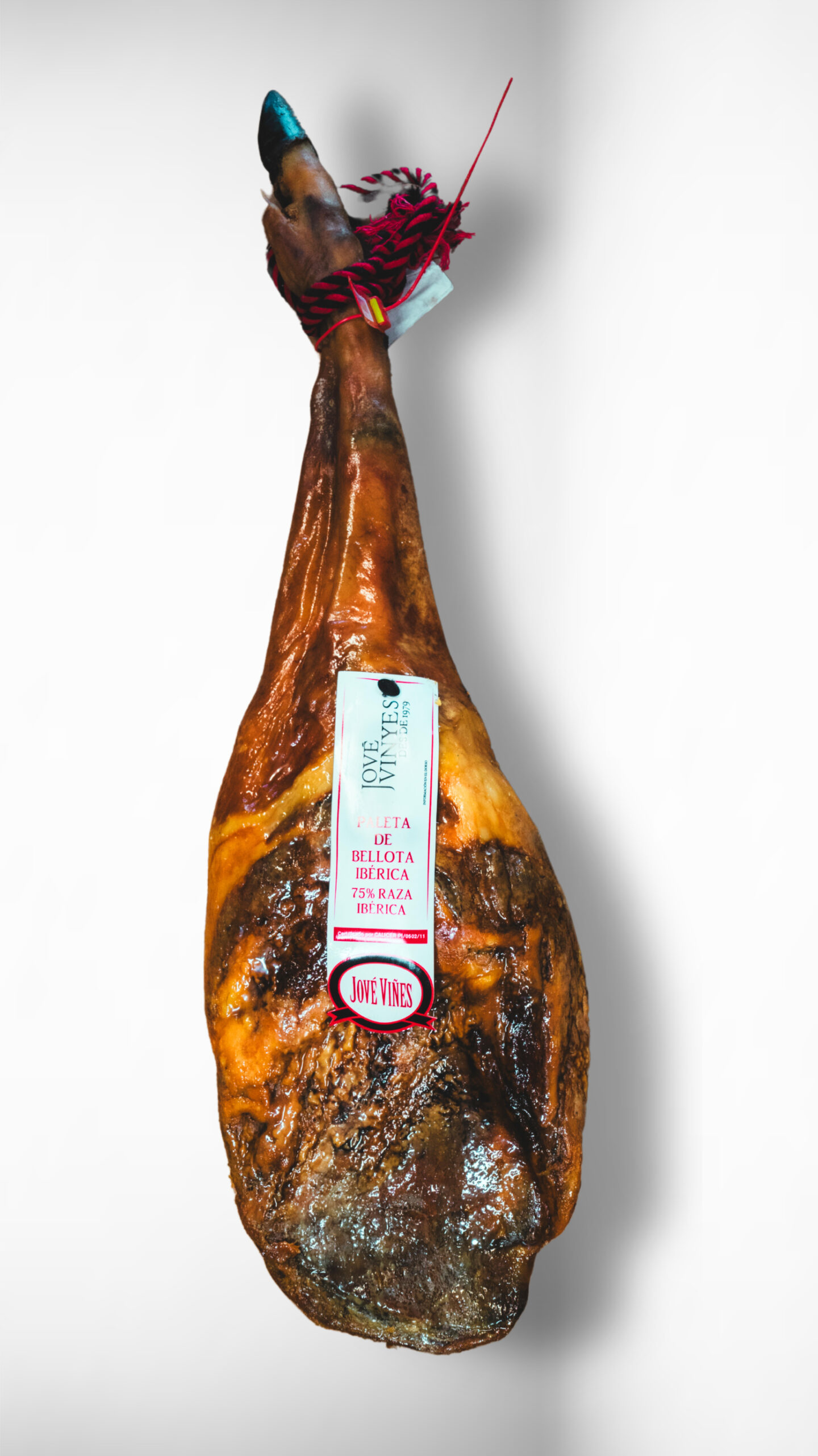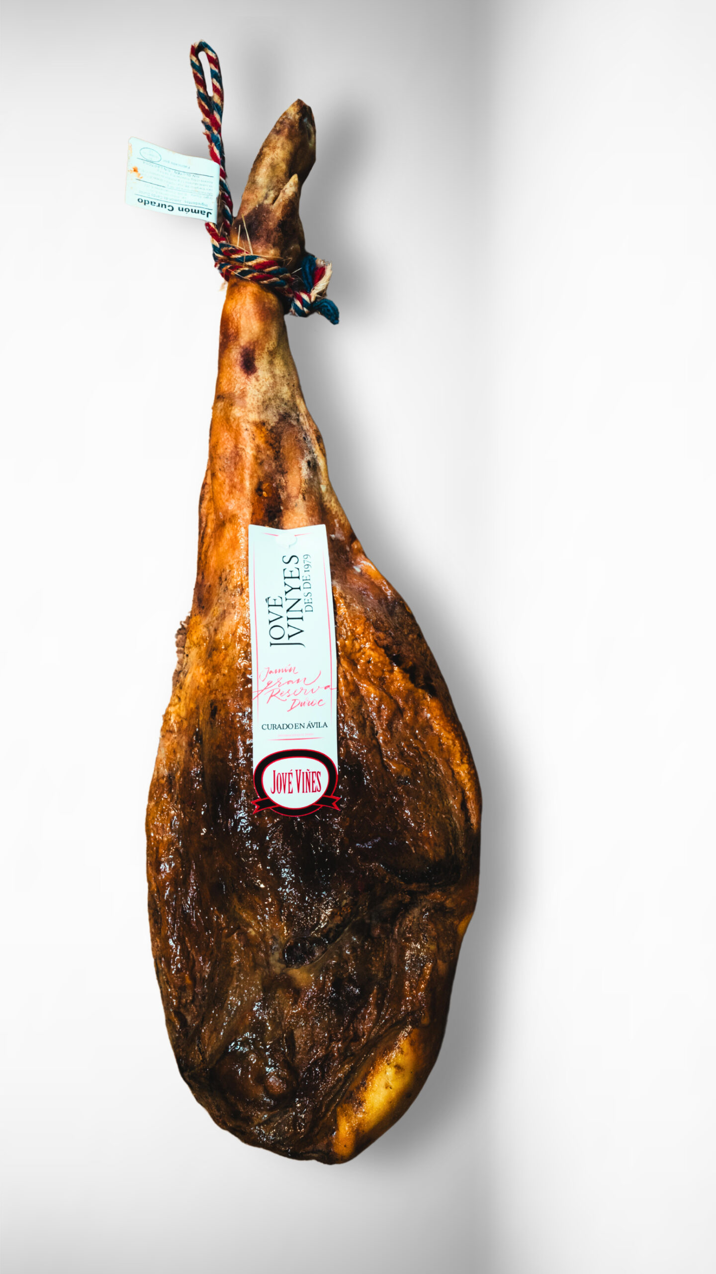 Peso: 6,8kg Precios a consultar directamente con atención al cliente: 973 42 00 07 El jamón Duroc Gran Reserva Jové Viñes es una pieza exclusiva, seleccionada entre los mejores ejemplares de raza Duroc, reconocida por su infiltración de grasa que aporta una textura tierna y un sabor intenso y equilibrado. Madurado durante un proceso de curación de 20 meses, este jamón adquiere aromas profundos y una jugosidad excepcional, haciéndolo perfecto tanto para degustar lonchas finas como para acompañar mesas de quesos y vinos selectos. Cada Jamón Duroc Gran Reserva Jové Viñes es el resultado de un proceso artesanal, donde se respetan los tiempos de maduración para garantizar la máxima calidad. Ideal para los auténticos amantes de la buena gastronomía.